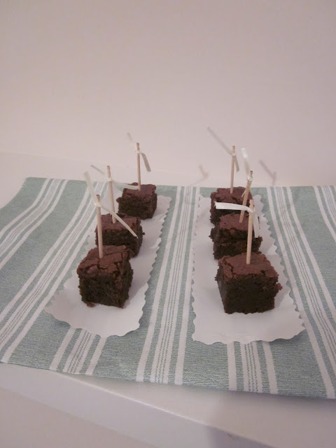 Así que que para hacer un brownie necesito una excusa, porque no creo que me lo vaya a recomendar ningún cardiólogo... En este caso se trató de hacer un postre para una cena de mi madre. No es el típico postre refinado que se sirve después de una lubina, pero yo acababa de recibir el libro "Baked: New Frontiers in Baking" y quería probar la receta del brownie que había ganado tantos premios como para hacer famosos a los dueños de este "coffee shop-bakery" de Brooklyn y que tanto le ha gustado a Oprah. El problema es que no contaba con que los americanos no solo miden los volúmenes en "cups", sino que las raciones normales para ellos aquí dan de comer a una familia de 4. Conclusión: hice el brownie, recorté circulos y los puse uno encima de otro a modo de torre para la cena y aún así me sobró media plancha de brownie. Pero la verdad es que duró más bien poco.